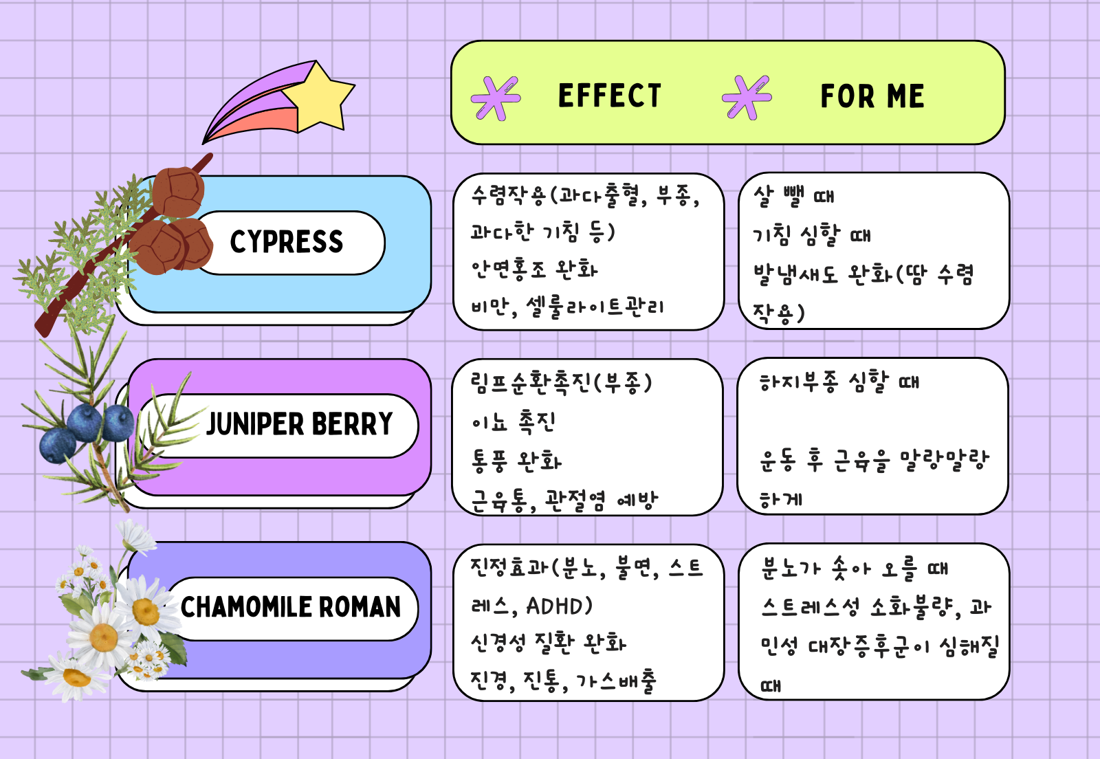사이프러스, 주니퍼 베리, 카모마일 로만 - 사이프러스 CYPRESS