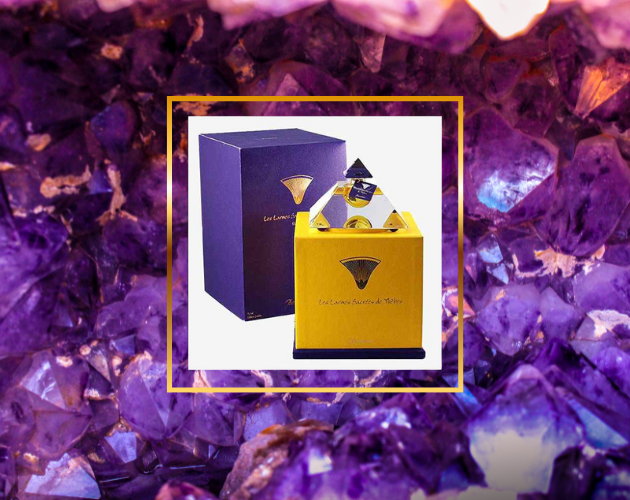피라미드 모양의 수공예 크리스탈 병에 담겨 있습니다.