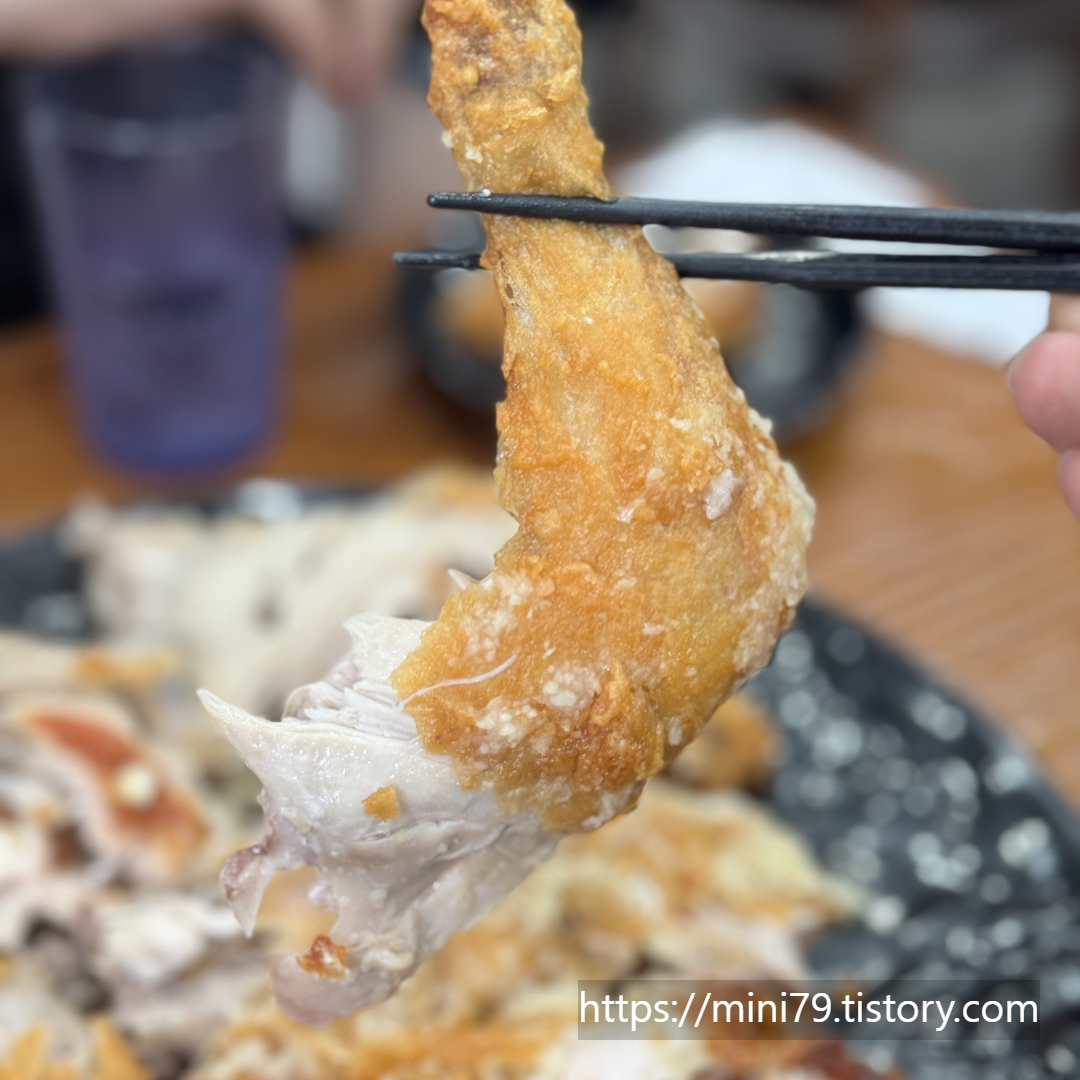 가마솥통닭에서 가능한 촉촉한 속살입니다.