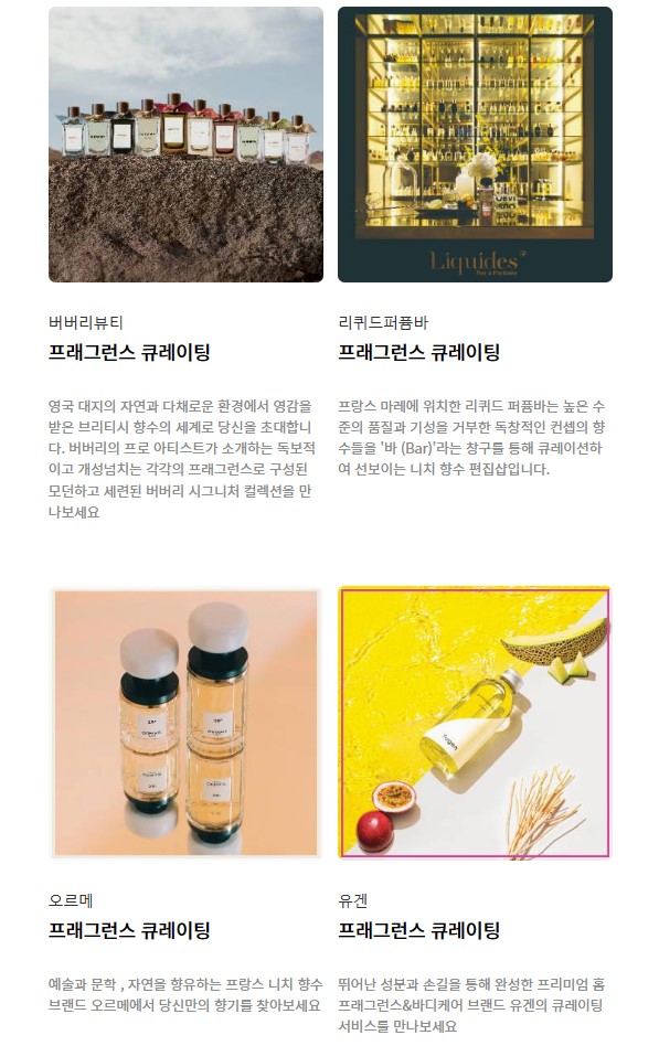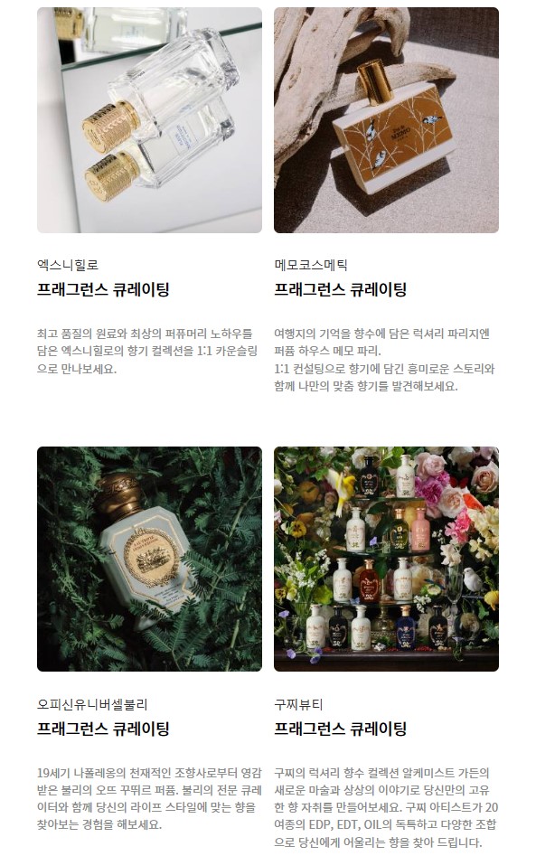 01234시그니처향을 만들어 준다고? 정말? 들어가시면 여러 브랜드의 큐레이팅이 나오는데요,
