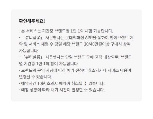 출처)롯데백화점 홈페이지. 세번째 딱! 뷰티살롱 적혀있죠? 본점은 확실히 참여브랜드가 많더라구요. [뷰티살롱] 프래그런스 컨설팅 서비스