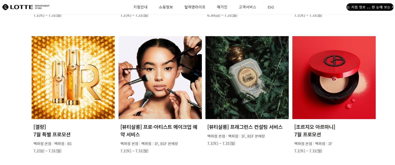 출처)롯데백화점 홈페이지. 여름에 딱맞는 향수 이미지. 구매욕구 뿜뿜! 롯데백화점 서울본점 기준으로 행사를 캡쳐해봤어요.